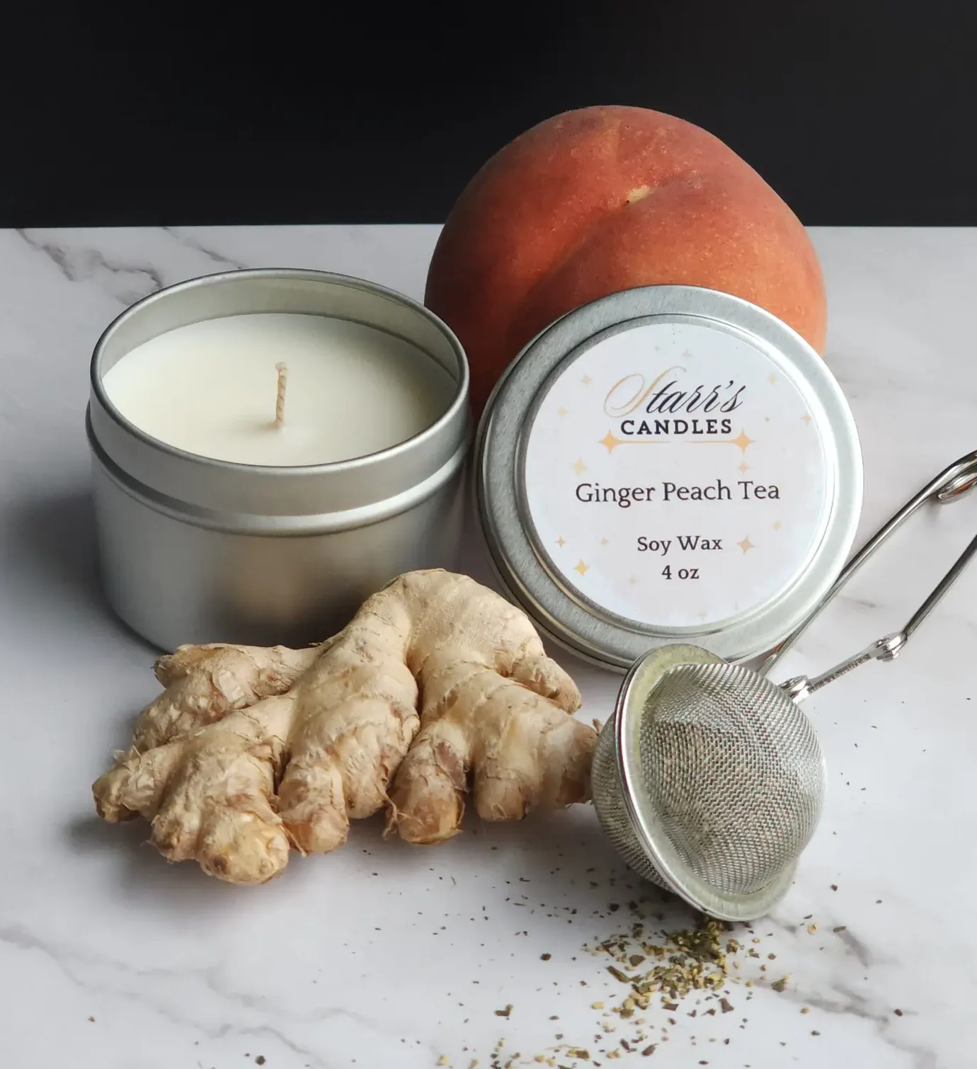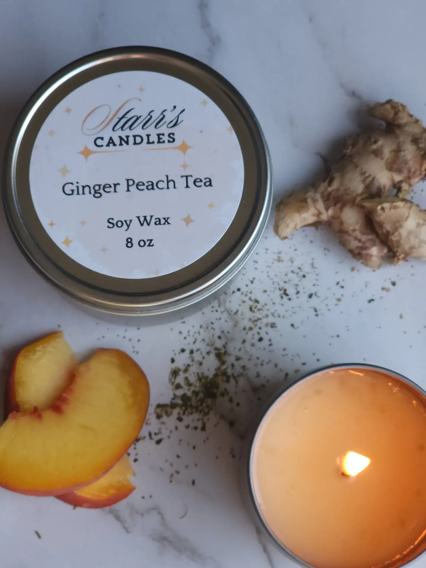 A relaxing blend of ginger spice and tea leaves sweetened by a southern peach vibe.
